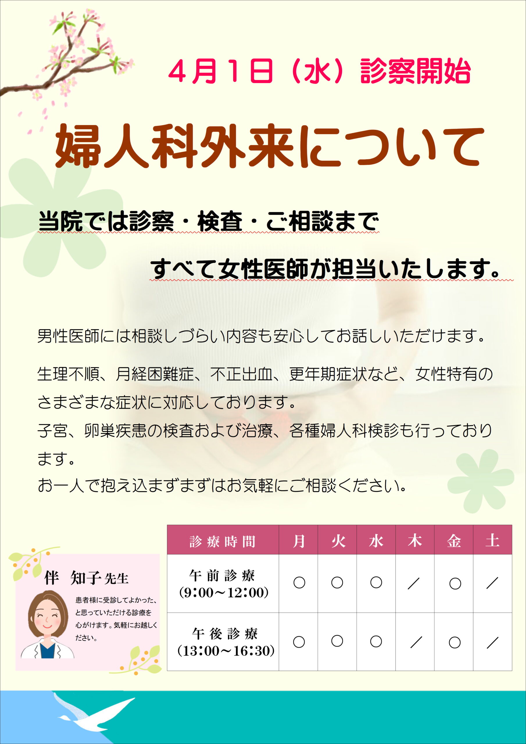 2026年4月より 婦人科外来がはじまります